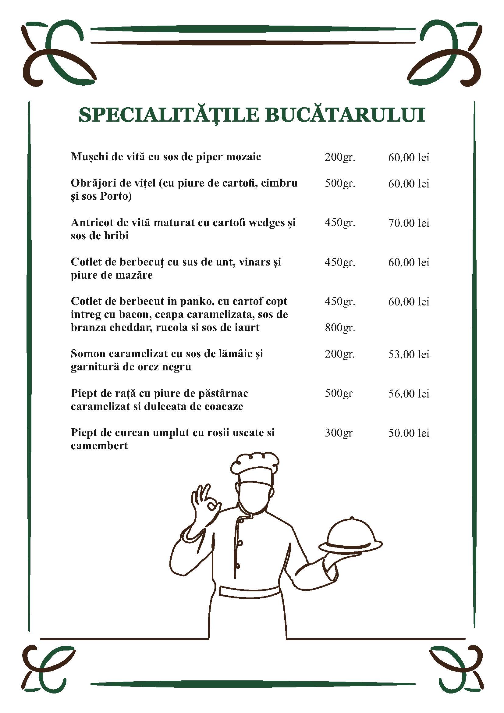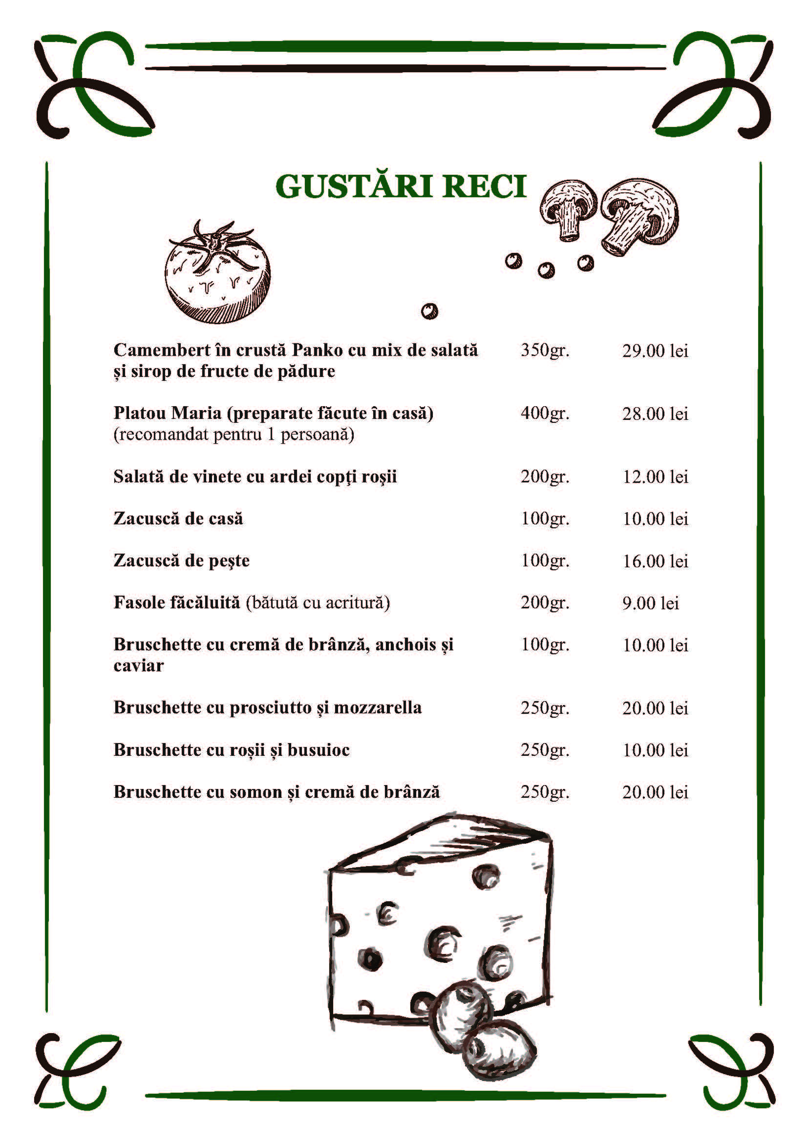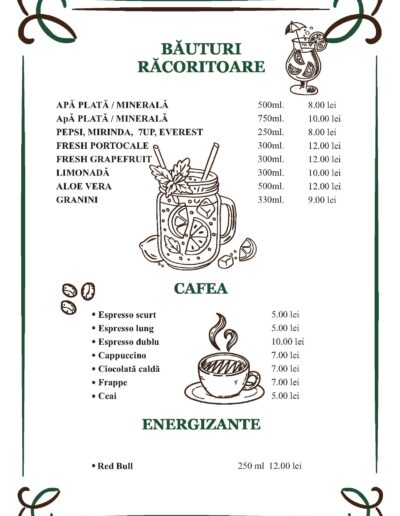 La restaurantele Complexului MARIA există o bogată listă de meniu , satisfăcând, după poftă, toate gusturile și exigențele, fiind adevarate delicii gastronomice.